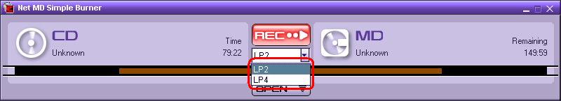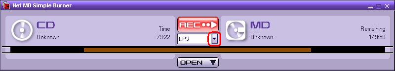 - Click the down arrow to select the desired recording mode for the Net MD Walkman.
